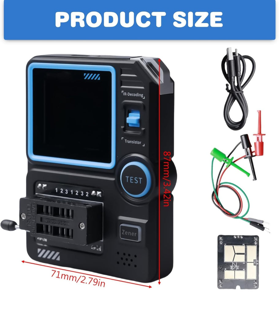 Rilevamento efficiente e facile da usare: con un solo pulsante, il tester transistor identifica in modo intelligente i parametri di vari componenti elettronici. Il semplice inserimento e il bloccaggio consentono misurazioni rapide e precise, ideali per professionisti e professionisti di elettronica.