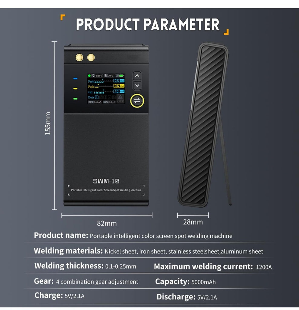 - AMPIA APPLICAZIONE - la saldatrice intelligente può essere utilizzata for la saldatura di batterie di telefoni cellulari, saldatura di batterie rotonde, riparazione di batterie ricaricabili, assemblaggio di batterie, può essere utilizzata anche for saldare altri materiali in ferro, acciaio e acciaio