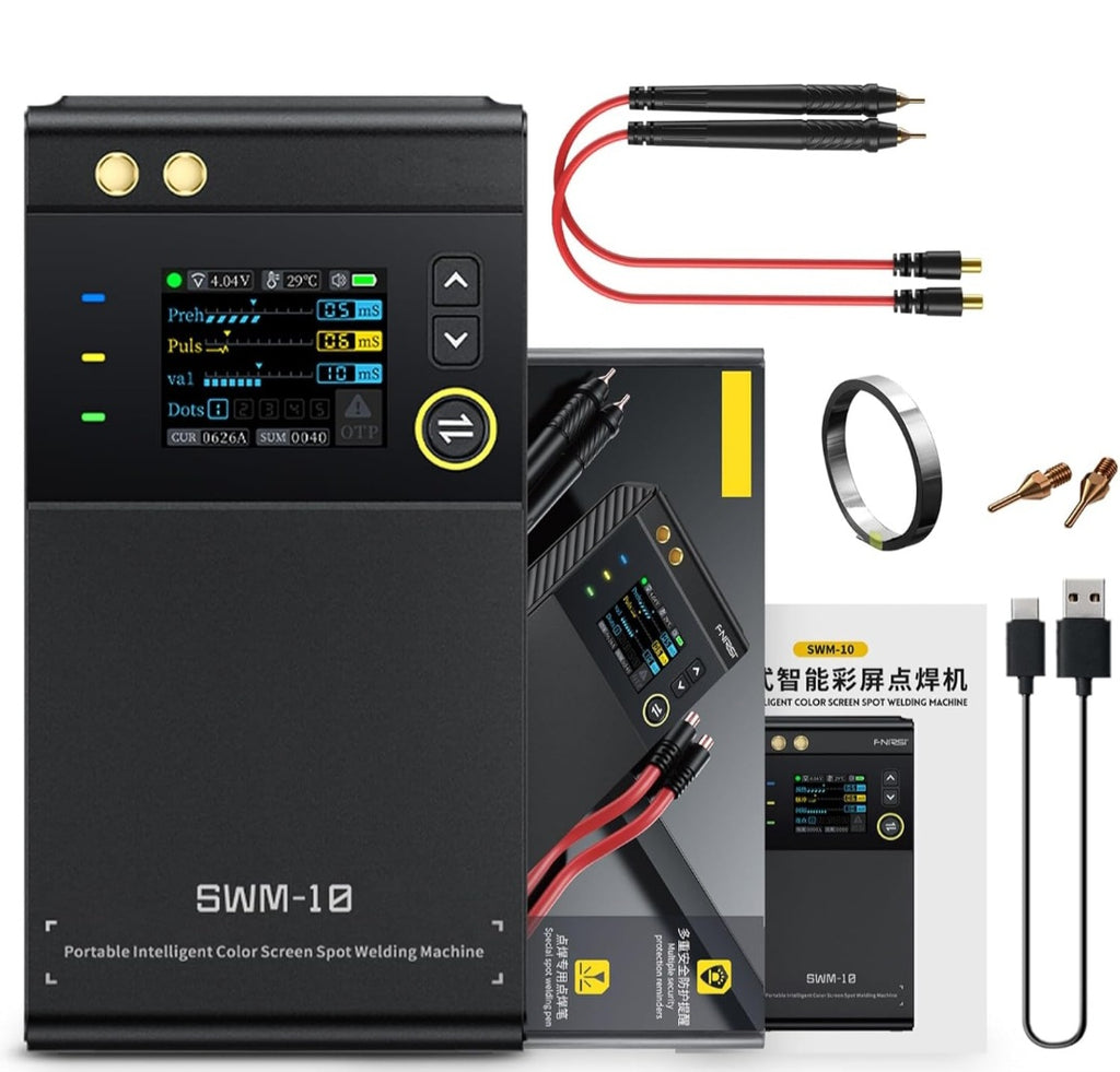 FNIRSI SWM-10 Saldatrice a Punti,SWM-10 5000 mAh Li,Saldatore A Punti Con Batteria Multiprotezione Staccabile,Mini Saldatore A Punti Per Nichel Da 0,25mm,Ferro,Acciaio,Lamiera Di Alluminio Da 0.3mm