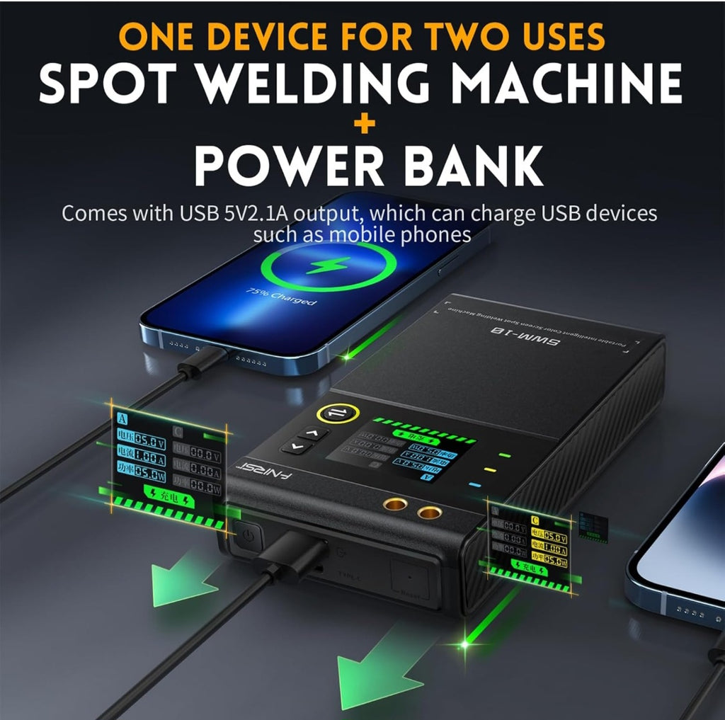 - BATTERIA DI QUALITÀ A E 2 IN 1 - Il saldatore a punti è dotato di 2 batterie A-Grade ad alta potenza (5000mAH di grande capacità). È possibile utilizzarlo per saldare migliaia di punti dopo la ricarica completa. E si può anche usare come power bank.