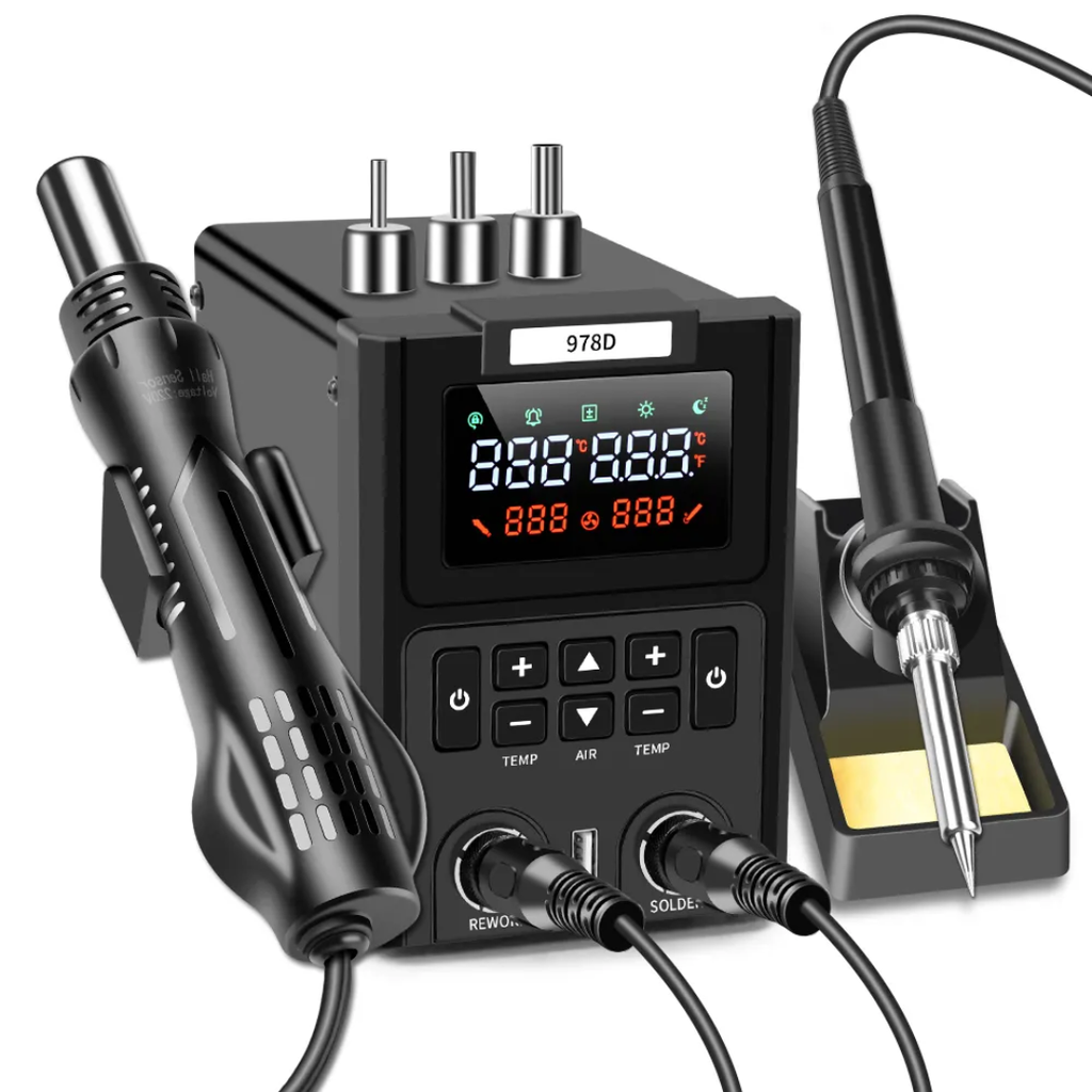 Stazione di Saldatura e dissaldatura ad aria calda per Smd con display digitale e 3 ugelli